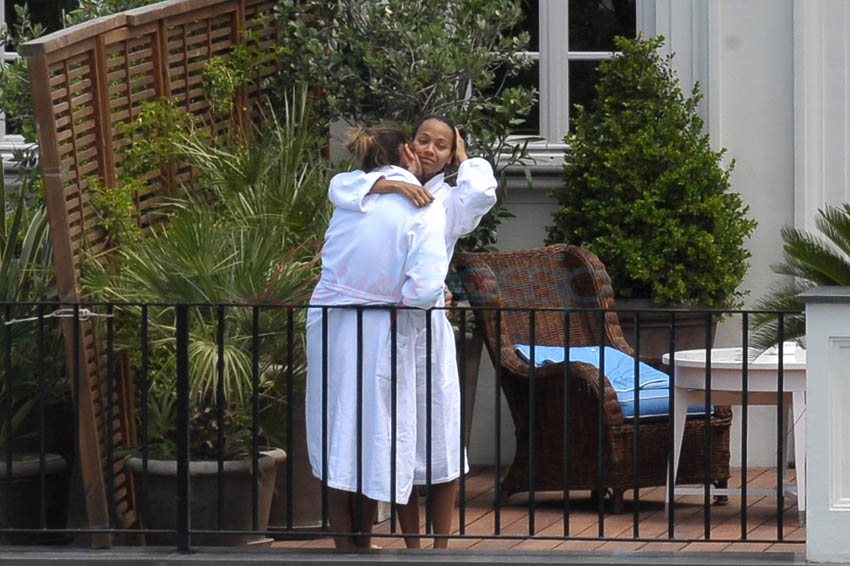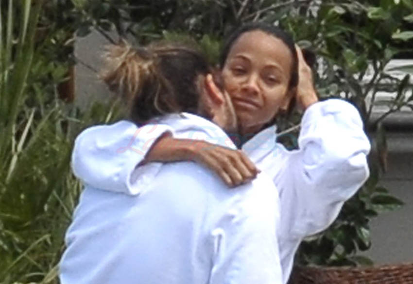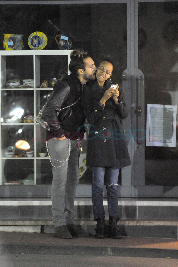 It was reported a couple of weeks ago that Zoe Saldana is dating an artist called Marco Perego. These photos certainly confirm it. They spent the weekend in Capri, very romantically. Check them out dancing and kissing and nipping on the street. I like a man who doesn’t mind carrying a woman’s purse for her. Sometimes that sh-t is a pain in the ass. He looks good with it too. Better than he does with that wallet chain. Can we PLEASE declare the wallet chain the same as a trucker hat?
