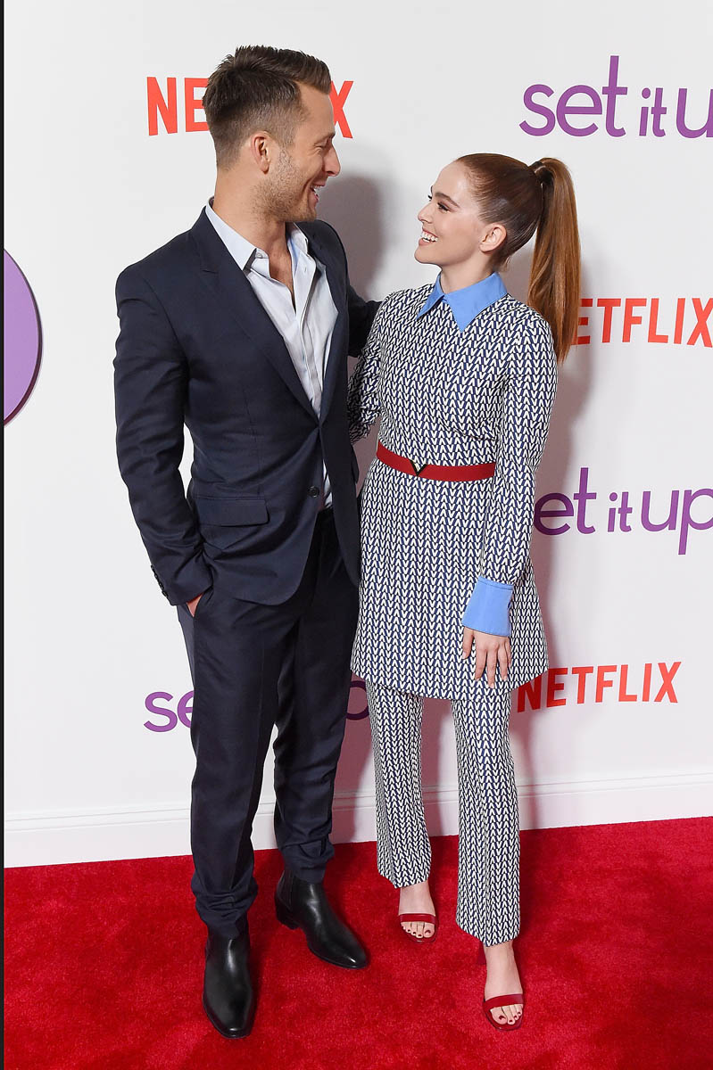 When I saw this chevron print striped pantsuit (dress suit?) on Zoey Deutch yesterday, I didn’t think she could top it. But then she came back strong today in the most adorable little black dress and, well, that’s two winners in a row. And both of them with strong collars.