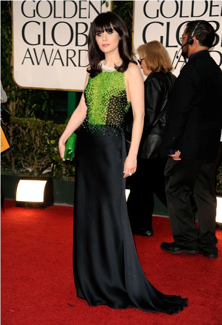 So good. The Globes is a relatively low-pressure time to transition into something else. And I think Deschanel had most things pretty right, in theory. Choose something unusual that is also not going to be the look that launched a thousand prom dresses (unlike her Emmy 2011 look) but that still lets her be her.